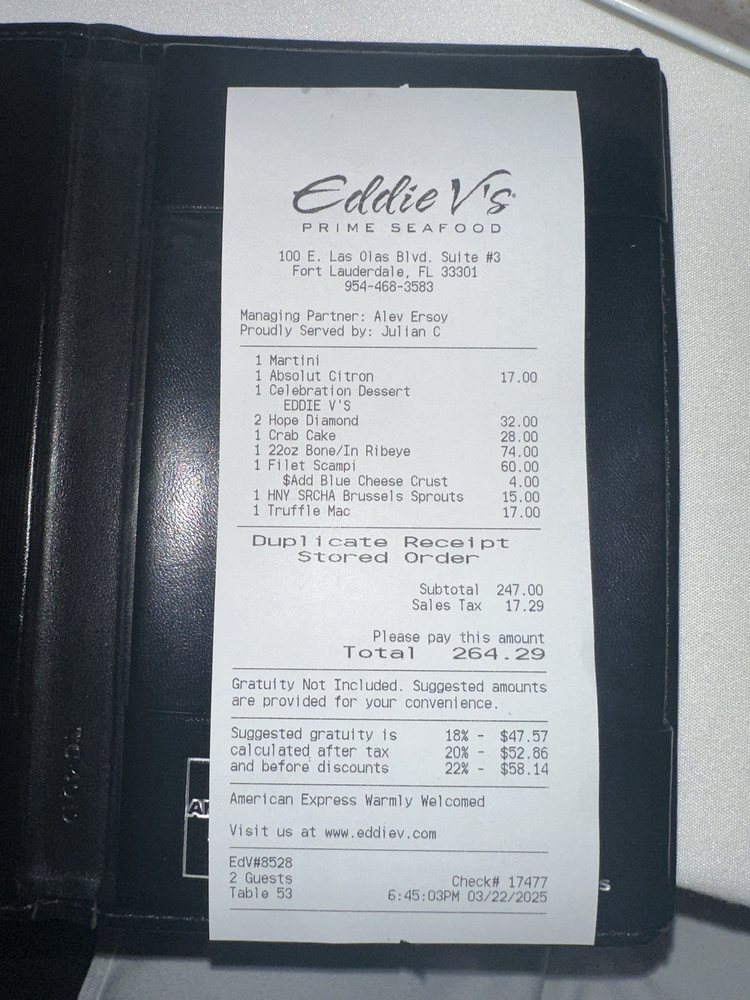Eddie V's Prime Seafood Fort Lauderdale Menu (Update 2025)